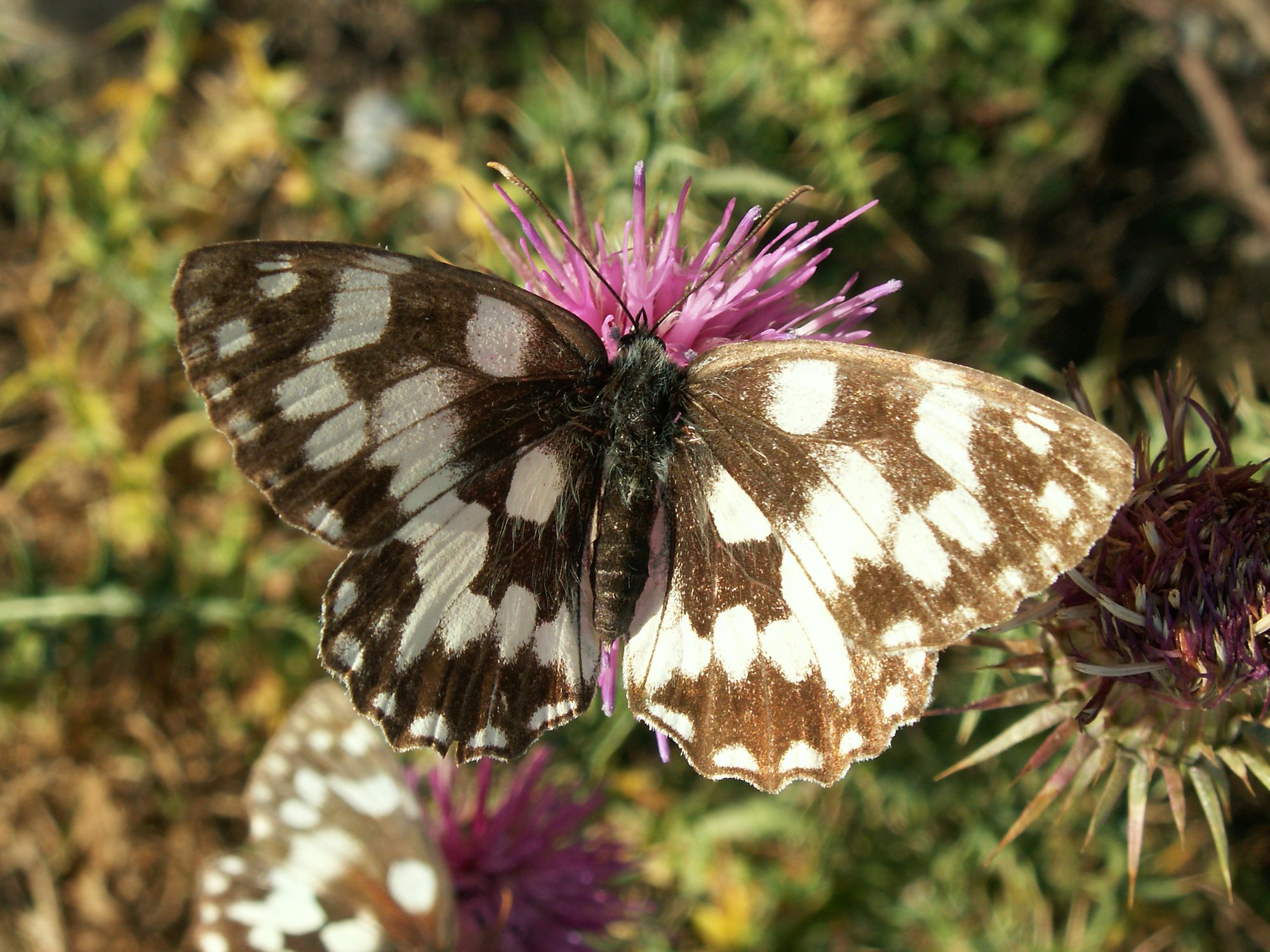Un papillon Demi-deuil (Melanargia galathea) au départ de la randonnée vers le refuge Bayssellance par Gavarnie (Vallée d'Ossoue, Hautes-Pyrénées).