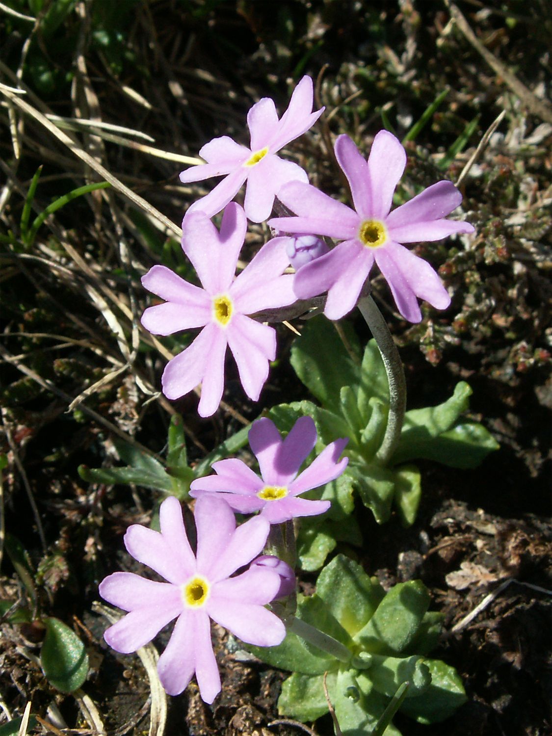 Des primevères farineuses (Primula farinosa) photographiées en descendant du Pic de la Cardinquère (Vallée du Marcadau, Hautes-Pyrénées).