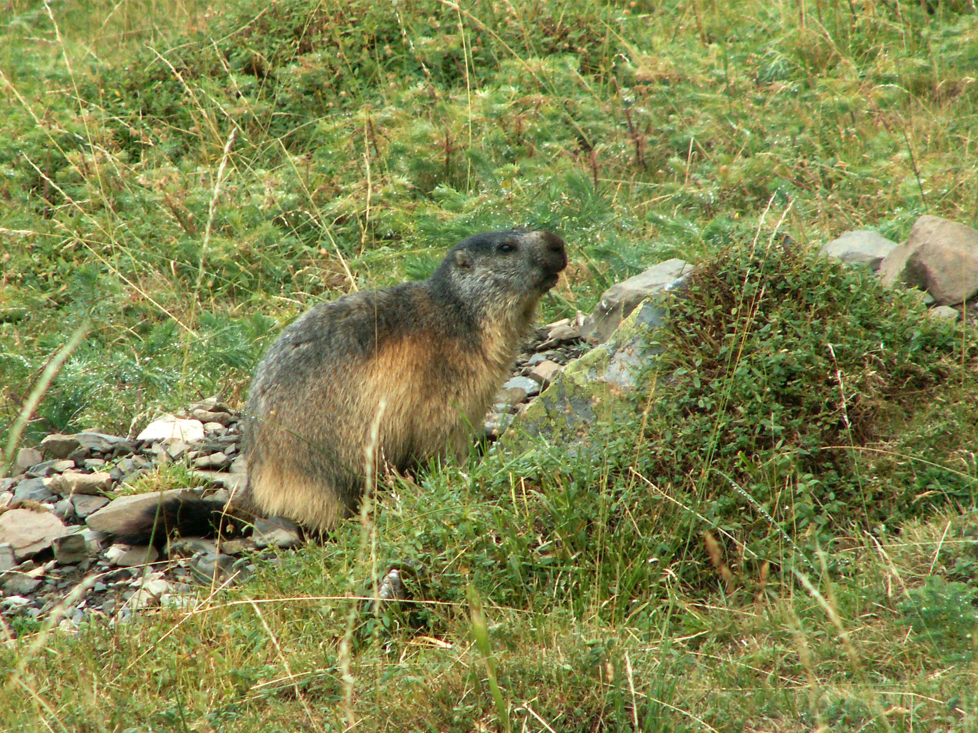 Une marmotte au petit matin, sur le chemin du Pic de la Bernatoire (Vallée d'Ossoue, Hautes-Pyrénées).
