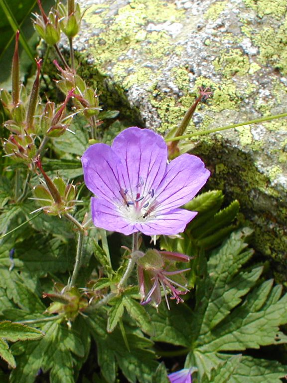 Un géranium des bois (Geranium sylvaticum) photographié sur le chemin du Lac d'Estom (Vallée du Lutour, Hautes-Pyrénées).
